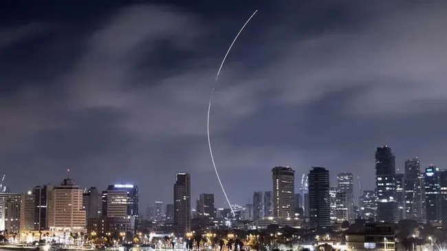 Di Yerusalem dan Tel Aviv, terdapat laporan bunyi ledakan dan kilatan cahaya terang saat sistem pertahanan 'Kubah Besi' Israel berusaha mencegat serangan itu.