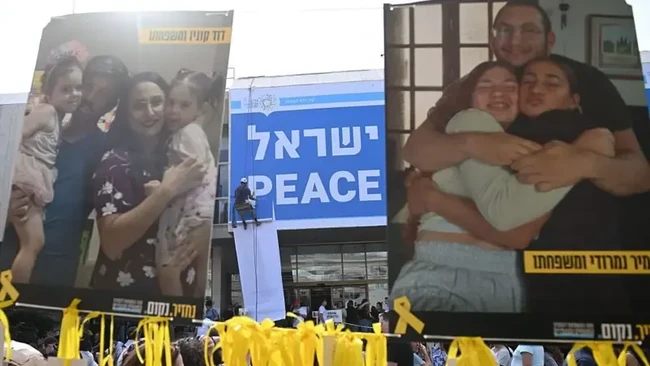 Keluarga sandera dan warga Israel berkumpul di Tel Aviv menunggu pembebasan sandera.