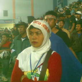 "Mari bersama-sama mendukung sby untuk menjadi presiden RI 2009-2014," teriaknya yang disambut dengan kibaran berdera dari masing-masing ormas dan tepuk tangan meriah.