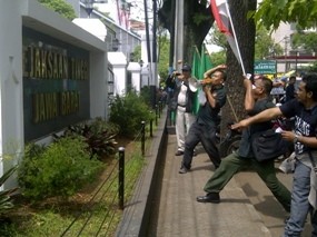 Dalam aksinya mereka sempat melemparkan telur busuk ke tembok pengenal Gedung 'Kejaksaan Tinggi Jawa Barat'.
