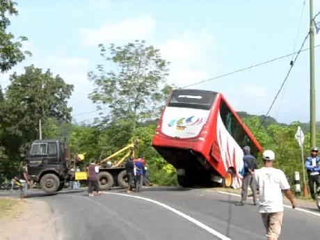 Hal senada disampaikan penumpang lainnya, Nawawi. Menurutnya saat kejadian ia tengah tertidur. "Saya tersadar sudah terjatuh dari jok mobil karena posisi bus nungging," katanya.