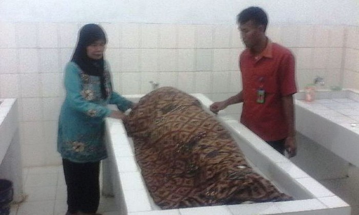 Autopsi dilakukan Dokpol RS Polri Kramatjati Jakarta Timur di RSUD Sekarwangi Cibadak Sukabumi, Rabu (10/12/2014). Ditemukan 15 luka tusuk di tubuh korban, dari wajah hingga perut.