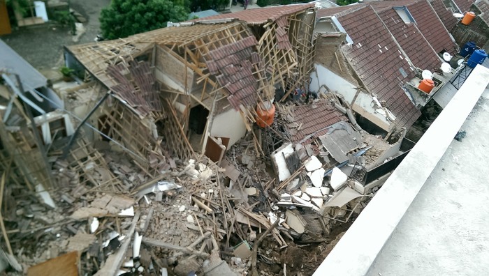 Pantauan detikcom, tiga rumah yang ambruk berada di Jalan Girimekar Asri II RT 1 RW 21, Kecamatan Cilengkrang, Kabupaten Bandung. Bangunan rumah yang masih utuh hanya tembok bagian depan. Sementara bagian isi hingga belakang, ambruk rata dengan tanah.