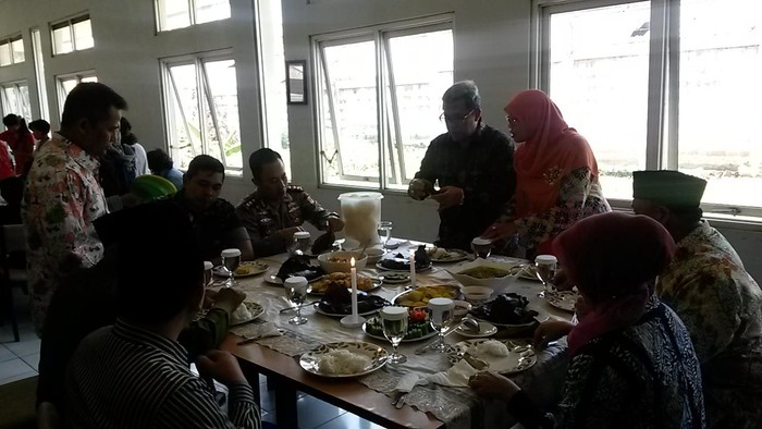 Usai salat Jumat Aher yang hadir bersama istrinya Netty Prasetyani makan siang bersama dengan warga. Warga terlihat cair dan nyaman meminta foto bersama dan mengobrol dengan Aher. (tya/ern)