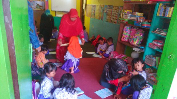 Murid TK Al Raudlotul Jannah antusias meski belajar sambil duduk lesehan beralas karpet. Suasana ruang 'kelas' tanpa kursi dan meja belajar. "Sekarang guru atau tenaga pengajar berjumlah empat orang, termasuk istri saya," kata Jack.