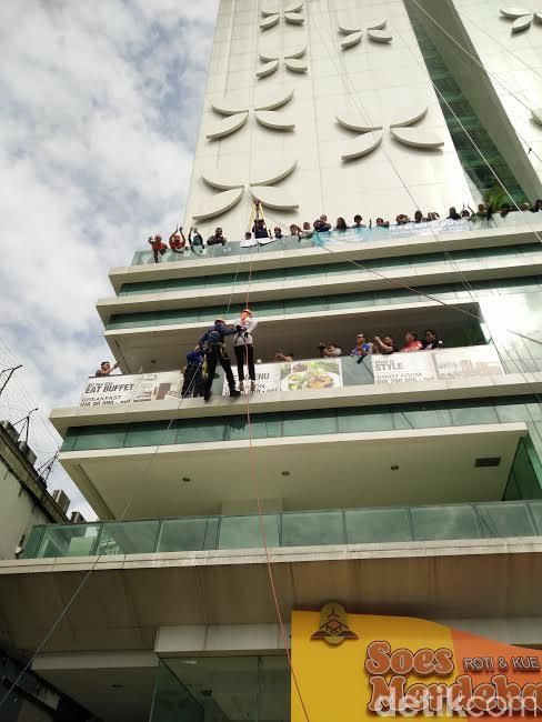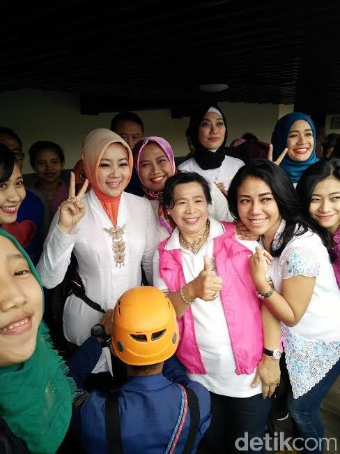 Riuh tepuk tangan menyemangati istri orang nomor satu tersebut. Perlahan tapi pasti, Atalia berhasil turun ke halaman hotel.