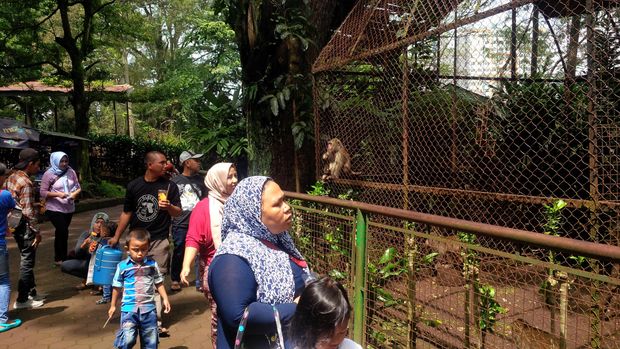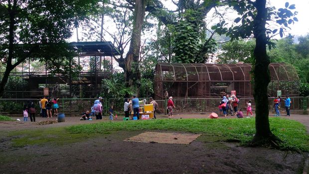 Di area dalam kebun binatang juga terpantau sepi. Area botram (makan bareng) yang biasa penuh sesak, terlihat lengang.