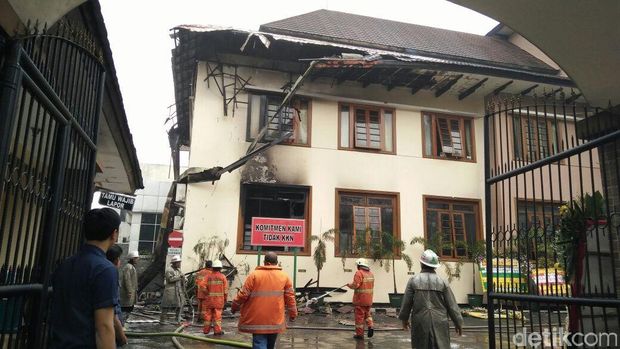 "Yang terbakar bagian depan saja. Aula dan ruang tunggu. Alhamdulillah tidak ada arsip penting yang terbakar," kata Untung.