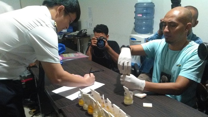 Tes urine berlangsung di bandara tersebut, Kamis (23/6/2016). Patauan di lokasi, terlihat salah seorang pramugari keluar dari ruangan pendataan serta pemeriksaan tes urine dengan wajah datar. Tangan kanannya terlihat memegang wadah urine yang masih kosong dan bergegas menuju kamar mandi.