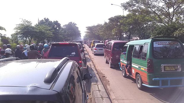 "Macetnya dari keluar pintu Tol Cileunyi. Kalau dari Cileunyi sampai ke sini (Jalan Soekarno-Hatta) kira-kira kemacetan mencapai 4 km," ujar petugas.