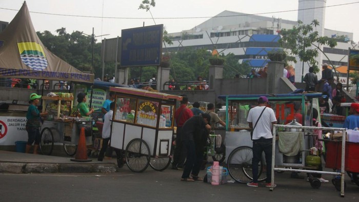 Para pedagang nekat berodagang di zona terlarang. Bahkan, mereka tak segan-segan berjualan menggunakan roda di samping pos penjagaan Satpol PP Kota Bandung. Sebab secara kebetulan tidak ada petugas yang berjaga.