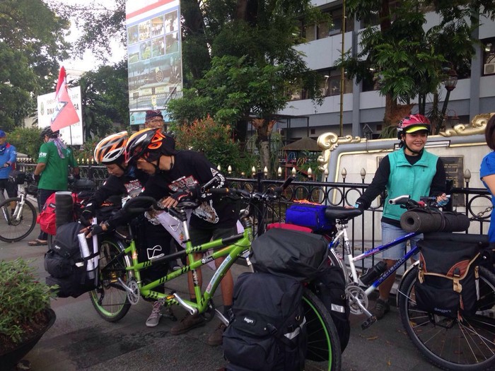 Sebelum melakukan perjalanan, mereka kembali memastikan sepeda berkondisi baik. Mereka memakai helm dan sarung tangan untuk menjaga keselamatan selama penjelajahan.