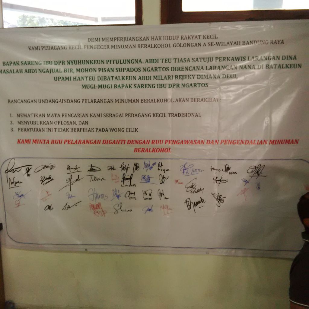 Awalnya puluhan pedagang bir eceran di Kota Bandung ini menjadwalkan berdialog dengan pihak DPR RI yaitu Wakil Ketua Pansus RUU Minol Lili Asdjudiredja. Namun Lili tidak hadir. Padahal mereka berharap pihak DPR RI bisa mendengar dan memberikan solusi terbaik.