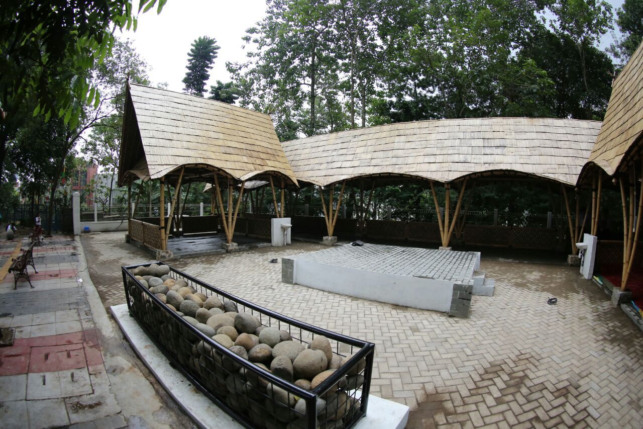 Tempat bernama Tamansari Foodfest ini terlihat nyaman dengan konsep tradisional ecofriendly. Ornamennya berbahan bambu. Di tempat tersebut terdapat fasilitas kamar mandi, tempat cuci tangan dan tempat duduk. (avi/bbn)