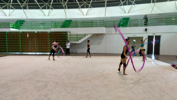 Sambil memantau persiapan para atlet Senam di Arcamanik, Aher berpesan agar berlatih keras dan bisa merebut medali emas pada PON nanti.