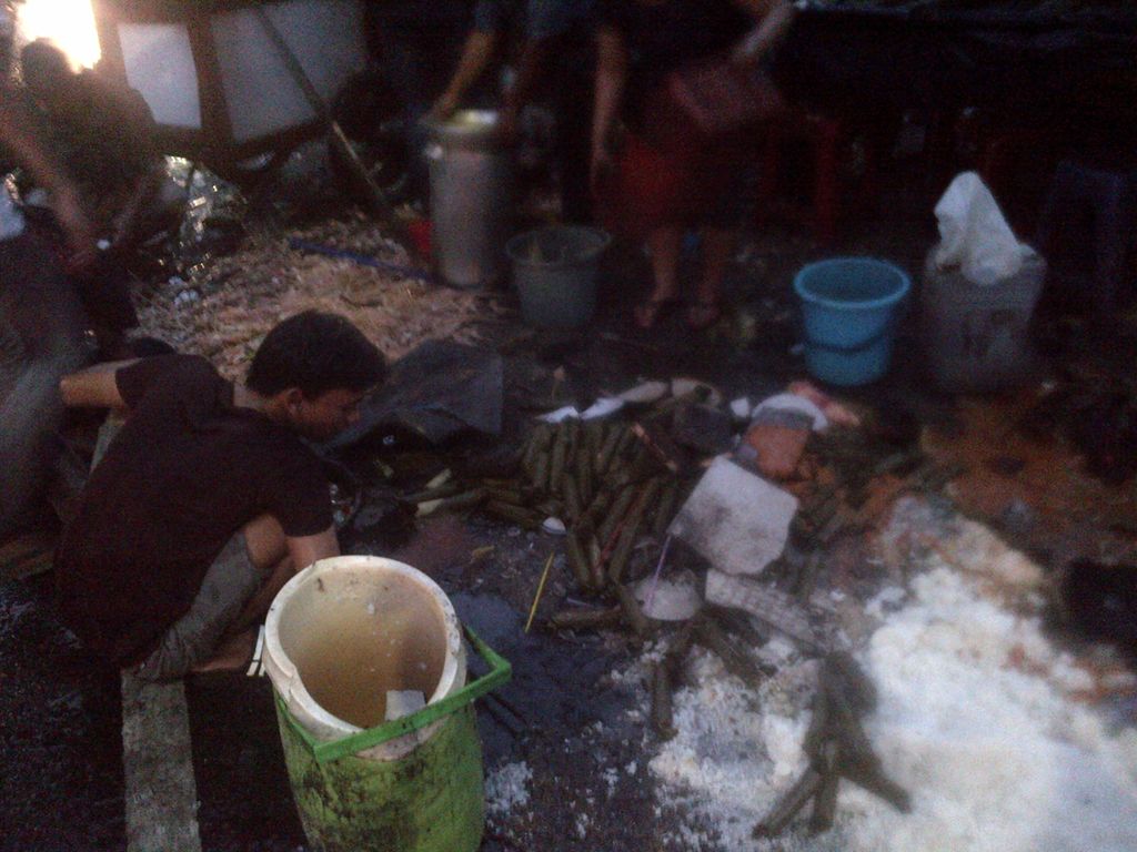 Dia menuturkan saat kejadian dirinya bersama dua orang pegawai baru selesai menyiapkan dagangannya. Sehingga, lanjut dia, belum ada pembeli yang biasa antre di sekitar tenda tempatnya berjualan.