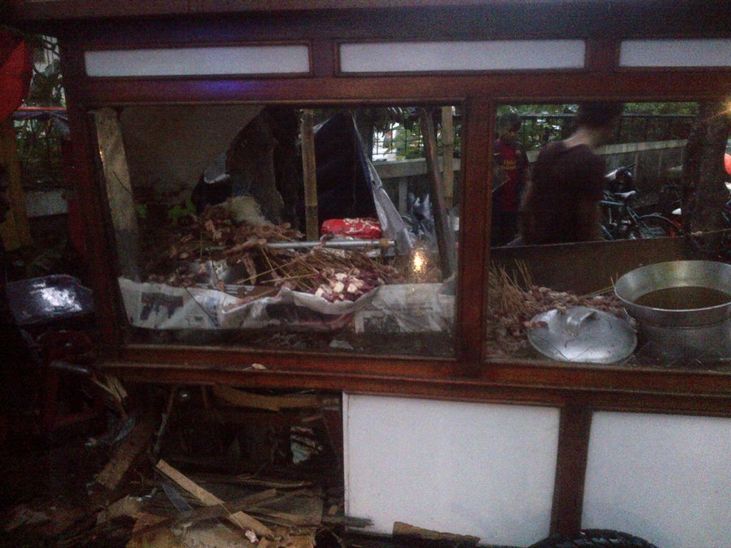 "Dari jauh udah keliatan ngebut dan ugal-ugalan bawa mobilnya, makanya pas itu tiba-tiba oleng, saya sama anak buah langsung refleks keluar tenda. Untung enggak ada yang ketabrak," kata Saeful (44), pemilik penjual sate saat ditemui di lokasi kejadian.