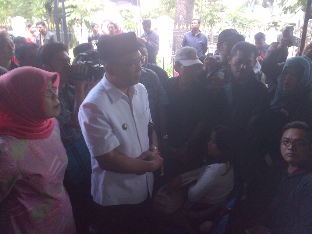 Sekitar 15 menit mengunjungi kantor Kecamatan Sumur Bandung, pria berkacamata itu langsung bertolak ke kantor Dinas Kependudukan Catatan Sipil (Disdukcapi) di Jalan Ambon. Kedatangan Emil langsung disambut warga dengan beragam keluhan.