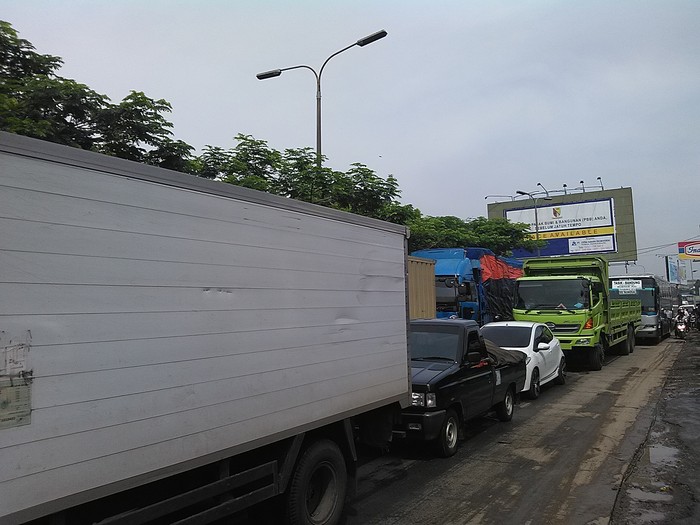 Beberapa kendaraan besar bahkan memilih mematikan mesinnya dan memarkirkan kendaraanya di tengah kemacetan parah.Sementara untuk kendaraan roda dua masih bisa menyalip-nyalip melalui sisi jalan.