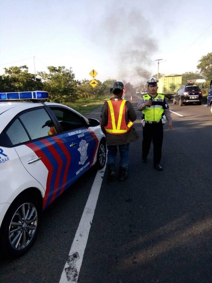 "Awalnya mobil tiba-tiba mengeluarkan asap dari bawah kendaraan, kemudian pengemudi memberhentikan mobil di bahu jalan," kata Andri.