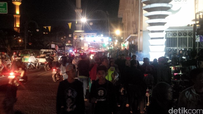 Pantauan detikcom, Sabtu (24/6/2017), sekitar pukul 22.30 WIB, kawasan Alun-alun Bandung menjadi salah satu titik keramaian. Warga berbagai usia berkumpul di kawasan Alun-alun Bandung maupun sepanjang Jalan Asia Afrika diiringi kumandang takbir yang berasal dari Masjid Raya Bandung.