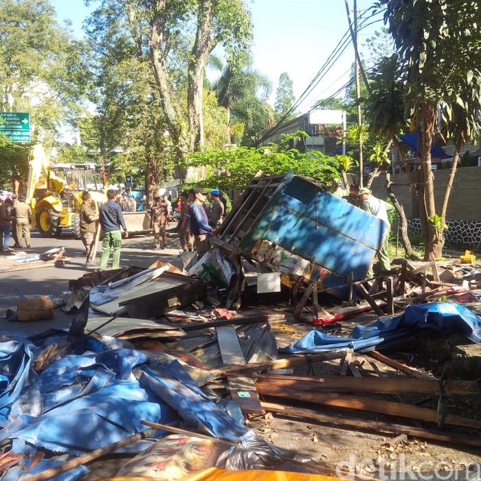 Sebagian besar bangunan liar semi permanen ini dibongkar petugas secara manual dan menggunakan beko. Sementara lapak lainnya dibongkar oleh pemiliknya sendiri sebelum dimulainya penertiban.