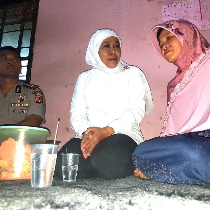 Khofifah yang datang didampingi Kapolres Sukabumi AKBP M Syahduddi dan Kepala Dinas Pendidikan Kabupaten Sukabumi Maman Abdurahman ditemui Ijah (40) ibunda korban, Apud (60) ayah tiri korban dan Abdulrohim kakak tiri.