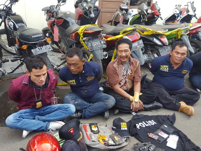 Polisi menciduk Mulyansyah (27), Nana Taryana (48), Udi Wahyudi (63) dan Tahrudin (40) di Terminal Tanjungpura, Kabupaten Karawang, Jawa Barat, Sabtu (26/8/2017), sekitar pukul 09.00 WIB. Sewaktu proses penyergapan, mereka kompak menggunakan kaus bertulis 'Turn Back Crime' dan mengaku anggota Mabes Polri.