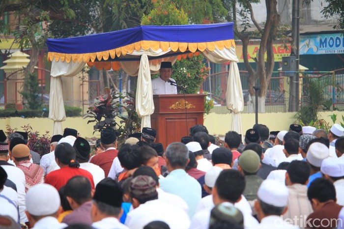 "Mengingat sekarang musim kemarau, kami berharap kepada warga untuk menghemat air," kata Adjat dalam sambutannya di atas mimbar, Jumat (1/9/2017).