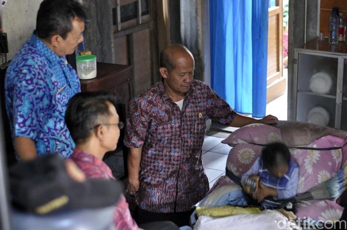 Tiga orang staf Dinsos ini melihat lebih dekat keadaan Bunga dan berjumpa dengan orang tua anak tersebut, Furqon (53) dan Sumarni (48). Bunga kerap membenturkan kepala ke tembok sehingga ortu terpaksa mengikat perutnya.