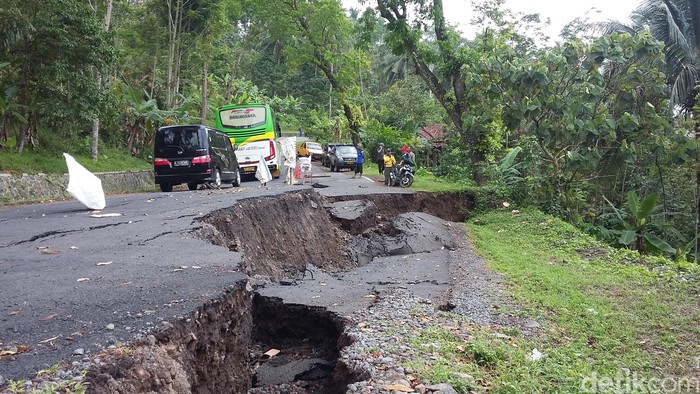 Lebar jalan yang ambles hampir dua meter dengan kedalaman mencapai 1,5 meter. Praktis setengah badan jalan tidak bisa dilalui kendaraan roda dua maupun roda empat. Akibatnya sistem buka tutup jalur harus dilakukan agar arus lalulintas lancar. Sementara itu warga berupaya memasang tanda bahaya di lokasi jalan ambles dengan menggunakan bambu seadanya.