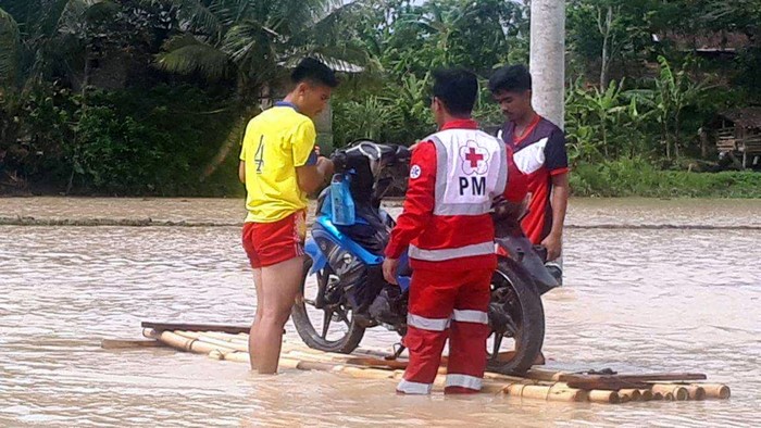 "Kami bersama sejumlah relawan berada di lokasi banjir membantu warga melakukan evakuasi, tidak hanya rumah, sawah dan traktor petani juga ada yang terendam. Warga pakai perahu milik BPBD untuk beraktivitas," kata anggota Korps Sukarelawan (KSR) PMI Kabupaten Sukabumi Widi Prasetya melalui sambungan telepon Selasa (10/10/2017).