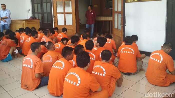 Puluhan penjahat tersebut dihadirkan di halaman Mapolrestabes Bandung, Jalan Jawa, Kota Bandung, Jabar, Rabu (18/10/2017). Para pelaku ditangkap lantaran melakukan aksi kejahatan jalanan mulai dari pencurian kendaraan bermotor (curanmor), pencurian dengan pemberatan (curat) dan pencurian dengan kekerasan (curas).