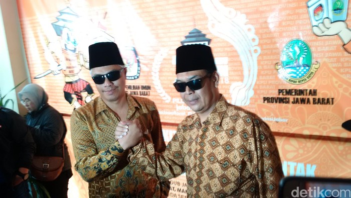 Kacamata hitam keduanya menjadi ciri khas. Duet tersebut baru melepas kacamatanya saat sesi wawancara dengan para wartawan.