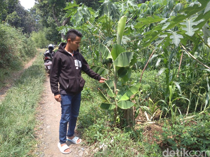 "Nah posisinya tepat di sini. Di bawah pohon pisang ini," ucap Irsyad sambil menunjuk ke arah pohon