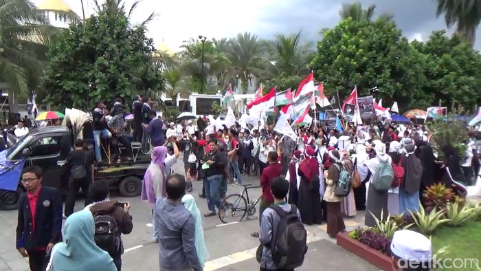 Massa membawa berbagai spanduk mendukung Palestina dan kecaman untuk Trump. Mereka menuntut kemerdekaan Palestina diakui seluruh negara.