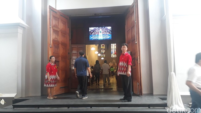 Berdasarkan pantauan detikcom di Gereja Katedral St. Petrus, Jalan Jawa, Kota Bandung, Jabar, Senin (25/12/2017) siang, sejumlah umat Kristiani sudah memenuhi ruangan gereja untuk menjalankan misa Natal sesi kedua. Seisi ruangan telah dipadati jemaat.