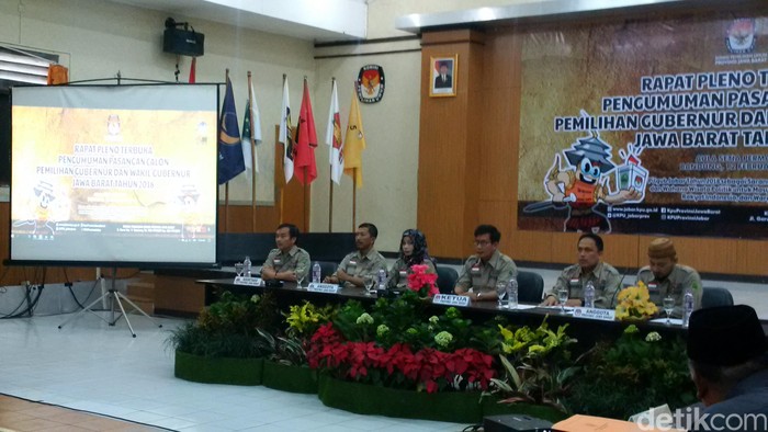 "Kami tadi melakukan rapat pleno tertutup, kemudian sekarang menggelar rapat pleno terbuka. Dari hasil penelitian sejumlah berkas persyaratan ke empat pasangan ini sudah sesuai dan telah resmi sebagai pasangan calon," kata Yayat, di Kantor KPU Jabar, Senin (12/20/2018).