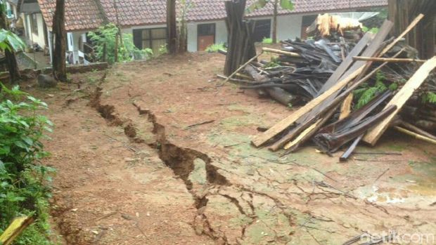 "Di Desa Mekarbuana ada 4 rumah yang terancam, di Panawangan ada 13 rumah mengalami retak-retak, memang posisinya berada di lereng tebing," ujarnya Rabu (21/2/2018).