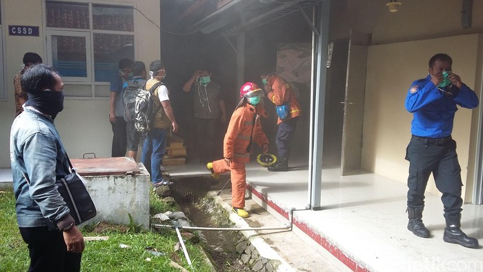 Tasikmalaya - Ruang radiologi baru RSUD Sukarjo Kota Tasikmalaya terbakar, Jumat pagi (2/3/2018). Diduga api berasal dari konsleting aki cadangan. Belasan pasien ICU termasuk balita pun dievakuasi.
