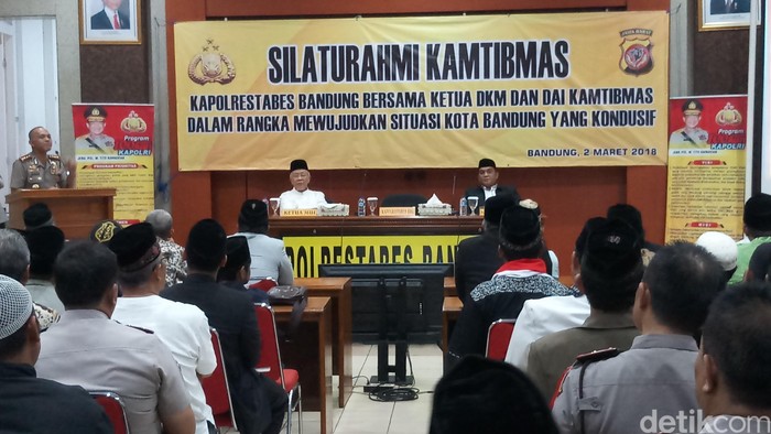 "Kita siap mengamankan, melindungi bahkan kita berdiri di garda terdepan untuk melindungi para ulama dan DKM Masjid di Kota Bandung," ujar Kapolrestabes Bandung Kombes Hendro Pandowo saat bertemu dengan ulama dan pengurus masjid di Mapolrestabes Bandung, Jalan Jawa, Kota Bandung, Jumat (2/3/2018).
