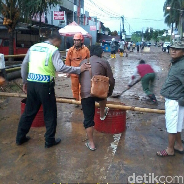 Meski banjir sudah surut, jalan yang terdampak banjir masih ditutup. Pasalnya, ketinggian lumpur menyebabkan akses jalan putus.