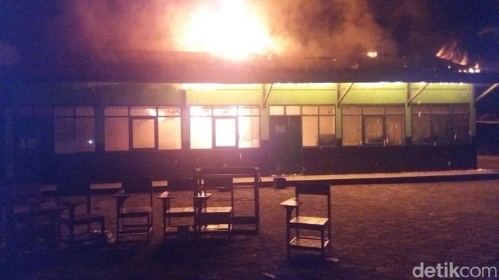 "Yang terbakar bangunan SD (IT) Siliwangi Leles yang terbakar," ujar Kadisdamkar Garut Aji Sukarmaji kepada detikcom di lokasi kejadian, Jalan Raya Tutugan Leles, Kecamatan Leles, Garut, Senin (26/03/2018).