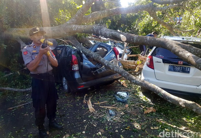 "Angin kencang selama beberapa menit, sambil ada suara berderak. Saya sempat teriak, supaya pengunjung menjauh lalu brak batangnya satu-satu jatuh," kata Aminudin, warga di sekitar lokasi kejadian kepada detikcom.