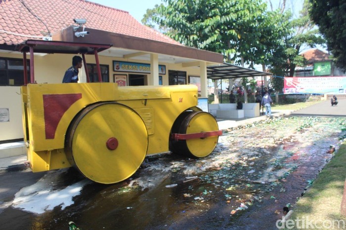 Pemusnahan miras berlangsung di Mapolres Garut, Jalan Sudirman, Karangpawitan, Jumat (11/05/18). Semua miras dimusnahkan dengan cara dilindas alat berat.