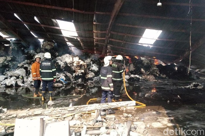Pantauan detikcom, Minggu (3/6/2018) api membakar habis gudang majun tersebut. Bangunan gudang tersebut hampir rata dengan tanah, karena sebagian sudah ambruk. Saat ini petugas pemadam kebakaran dari Dinas Kebakaran Kabupaten Bandung masih melakukan pemadaman api yang masih menyala di bagian belakang gudang.