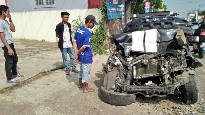 Mobil tersebut menyalip beberapa kendaraan lain. "Mobil itu nabrak angkot lalu nabrak truk sampai ringsek, Penumpangnya (di mobil Rush) terluka," kata salah satu warga, Deris, di lokasi kejadian.