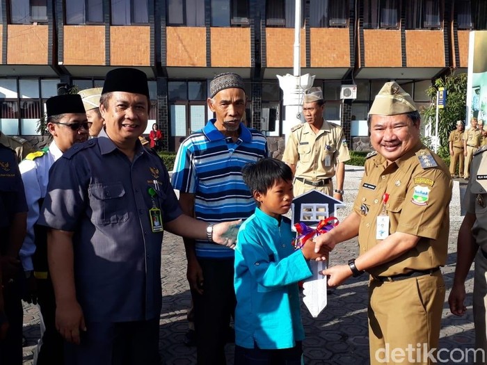 Bupati Rudy Gunawan menyerahkan secara simbolis kunci rumah baru yang akan dihuni Fadil dan keluarga. "Semangat Fadil ini semoga bisa menjadi contoh bagi kita untuk tidak pernah menyerah. Semoga rumah ini bermanfaat," ujar Rudy dalam sambutannya di hadapan peserta apel.