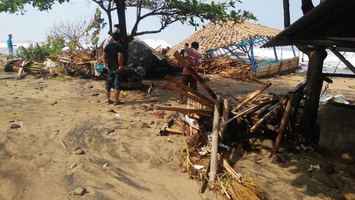 Gelombang pasang menerjang pantai selatan Kabupaten Garut pada akhir Juli 2018. Berdasarkan data yang diperoleh dari Badan Penanggulangan Bencana Daerah (BPBD) Garut, total ada 46 rumah milik warga yang mengalami kerusakan.