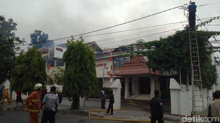 "Ya pakai alat pemadam, tapi susah. Akhirnya Amin mematikan listrik hotel dan menyuruh orang-orang yang ada di dalam hotel keluar. Waktu itu di kamar sebelah yang kebakaran ada orangnya, selamat semua keluar bawa tas," tutur Otong.